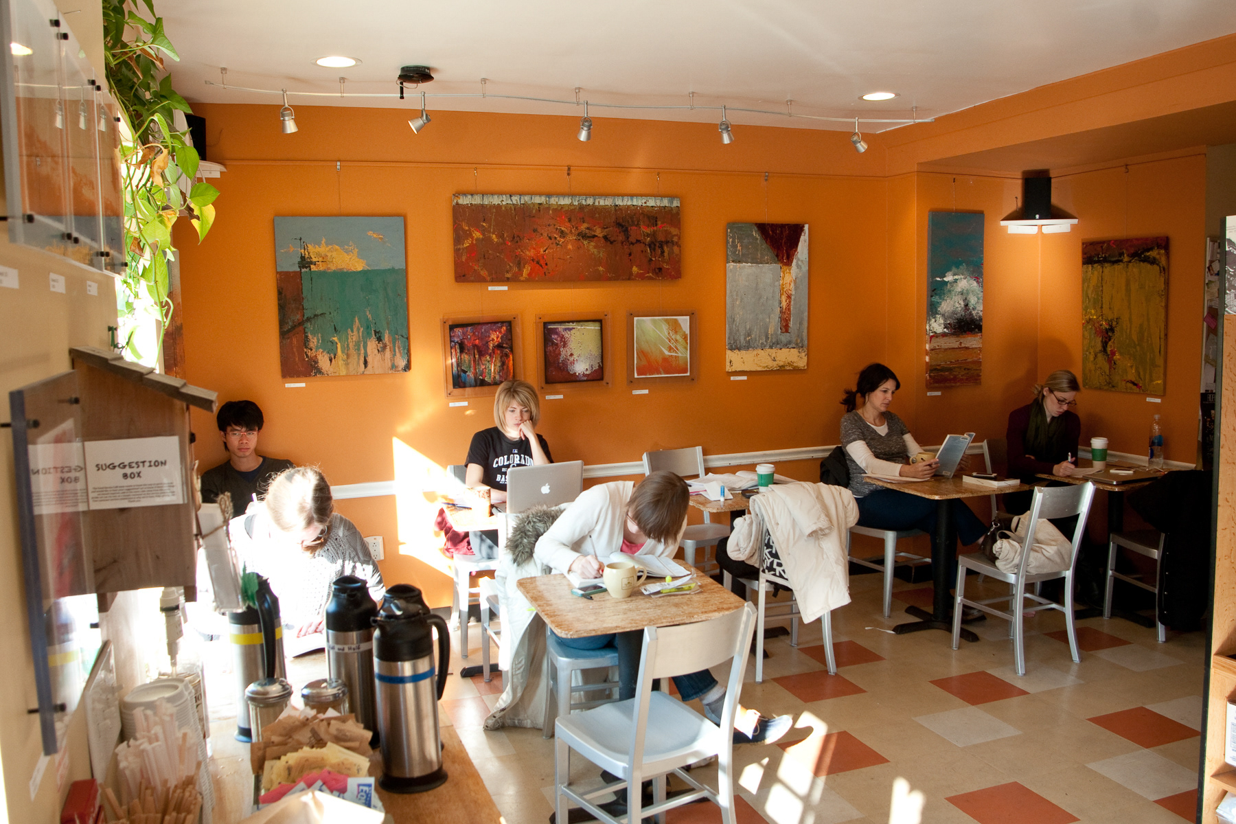 The Good Karma Cafe is designed to carry on the tradition of the hip, Bohemian neighborhood coffee shop that not only serves great coffee and espresso drinks, but also serves as a community meeting place where people come to discuss politics, poetry, music and love.